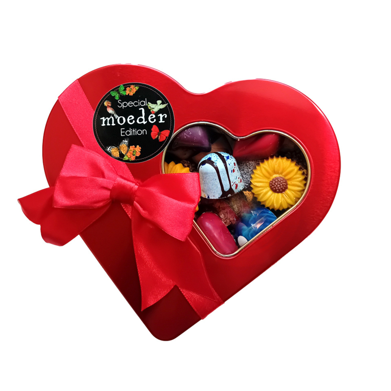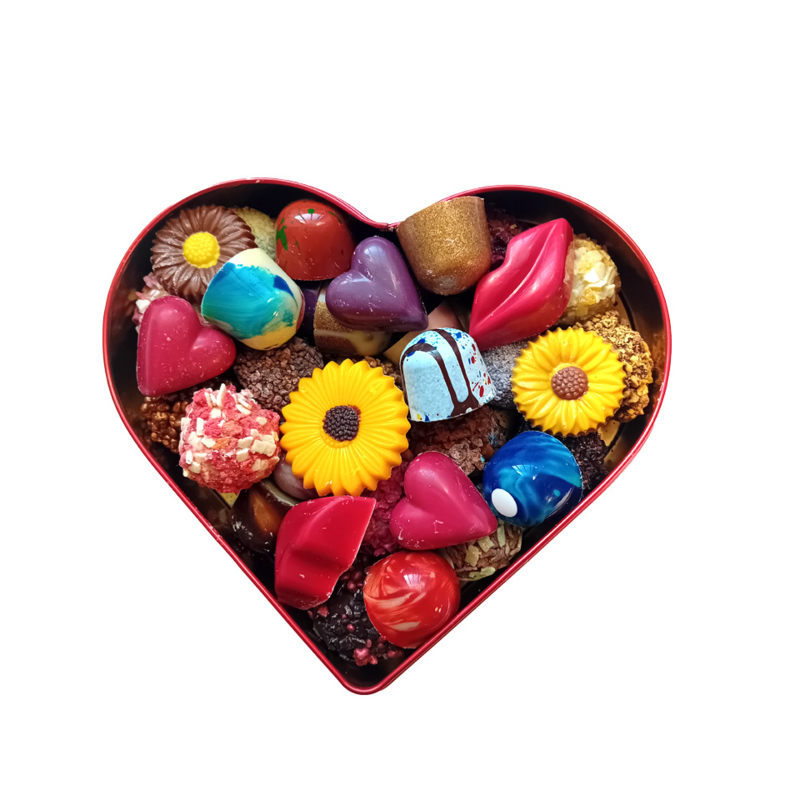 Rood Hart met handgemaakte chocolade bonbons een Luxe Chocoladecadeau