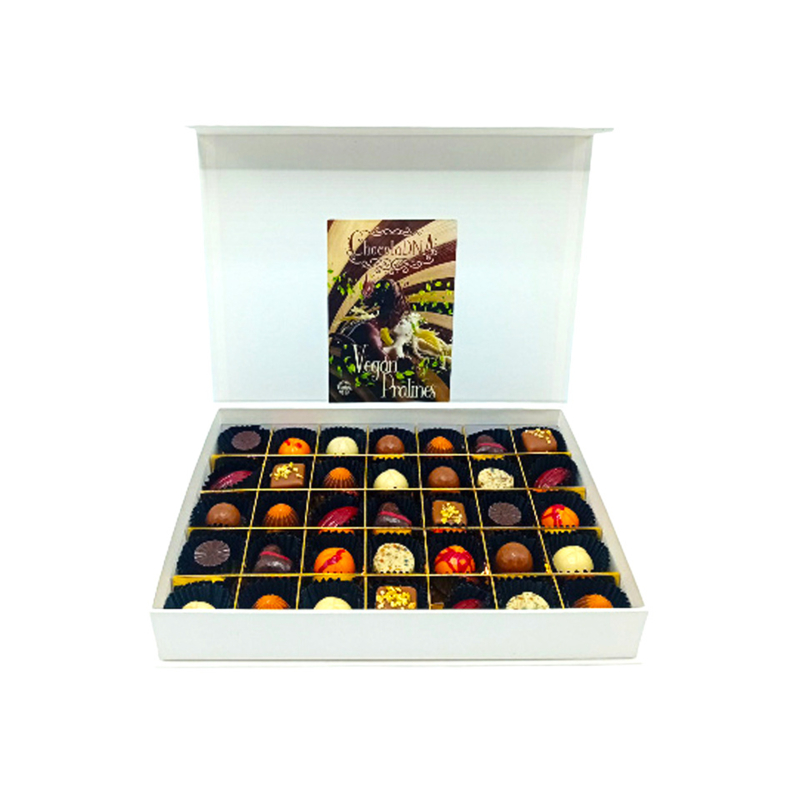 Deze VEGAN & LACTOSEVRIJE bonbons doen qua smaak absoluut niet onder voor onze reguliere bonbons en truffels. Verwacht een smaakexplosie die zacht, rijk en intens is… zó goed dat je vergeet dat ze vegan zijn. Perfect om cadeau te