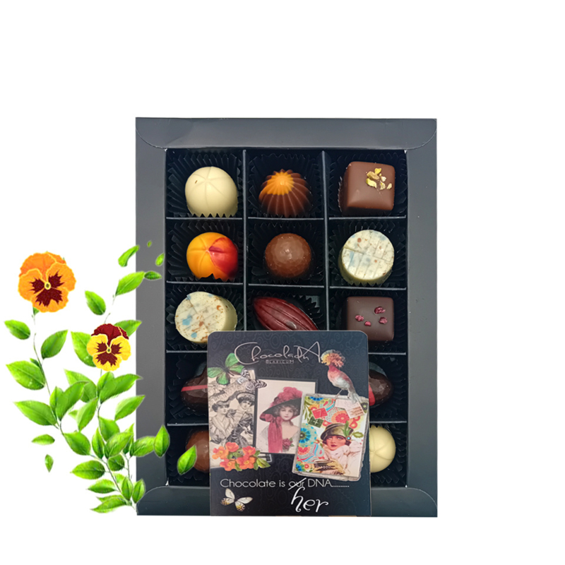 Handgemaakt chocolade assortiment voor de liefste (aankomende) moeders, oma's, schoonmoeders, bonusmama's en stiefmoeders van de hele wereld. Hier worden ze heel blij van! Met gratis kaartje + Poëzie-album