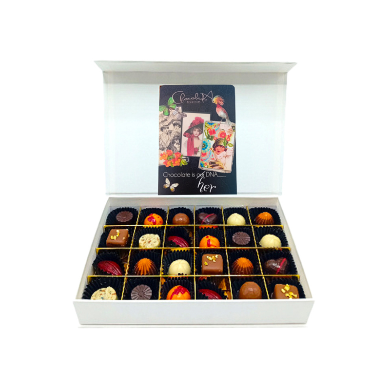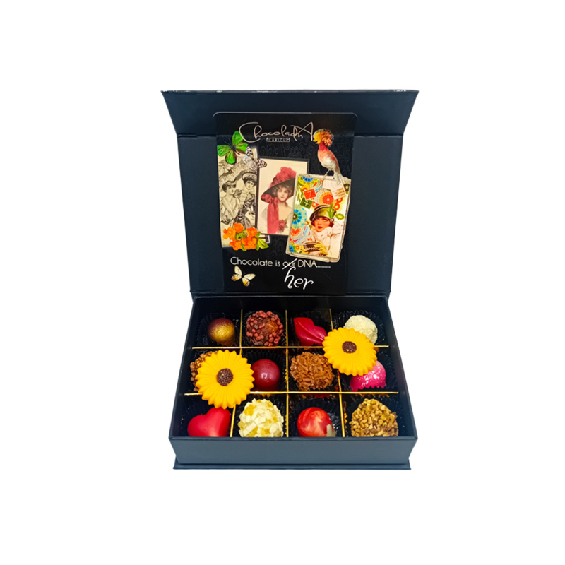 Speciaal chocolade assortiment voor de liefste moeders en vrouwen en van de hele wereld. Alle moeders, oma's, schoonmoeders, bonusmama's en stiefmoeders worden hier heel blij van! Met gratis kaartje + Poëzie-album