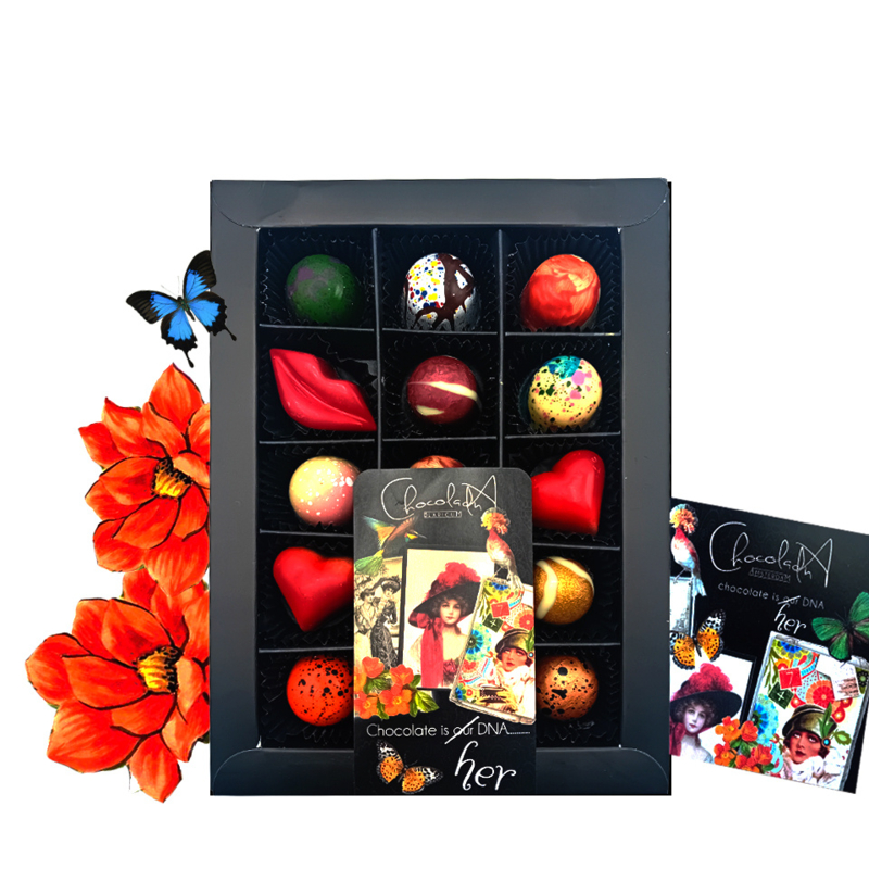 Speciaal chocolade assortiment voor de liefste moeders en vrouwen en van de hele wereld. Alle moeders, oma's, schoonmoeders, bonusmama's en stiefmoeders worden hier heel blij van! Met gratis ansichtkaart + Poëzie-album